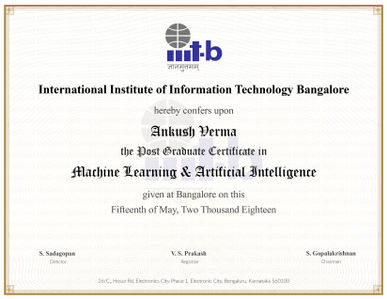 Complete all courses successfully and receive Post-Graduate certificate. Become a part of the Machine Learning community with the PG Alumni status from IIIT-Bangalore